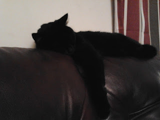 Here's his sister, Luna, taking a nap on the back of the couch: